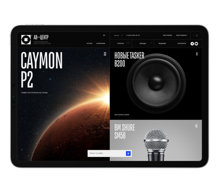 Разработали интуитивно понятный и функциональный каталог товаров, который помогает B2B-клиентам быстро находить нужное оборудование. Учитывая специфику профессионального аудио- и видеооборудования, мы создали структуру, максимально упрощающую навигацию среди 2 000 единиц товаров.