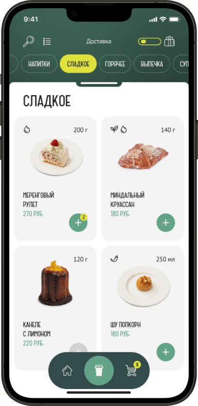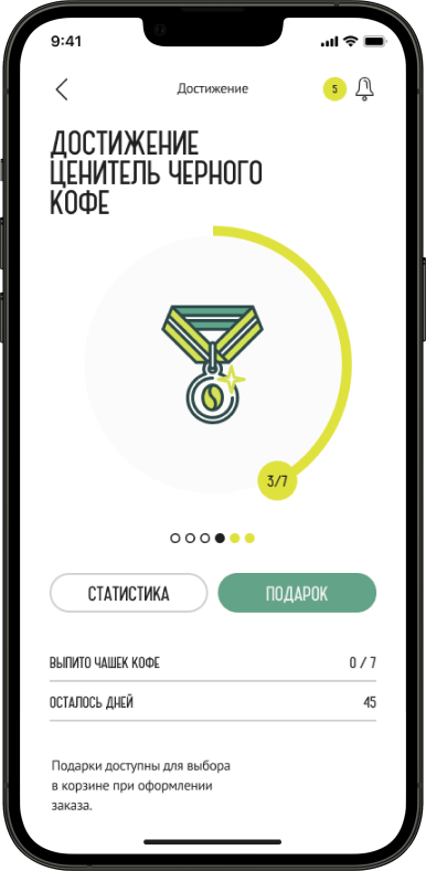 Ненавязчиво вписали в интерфейс простые фичи. Благодаря ним пользователь не просто покупает кофе, но и зарабатывает баллы, отслеживает свой прогресс и ставит себе новые цели.