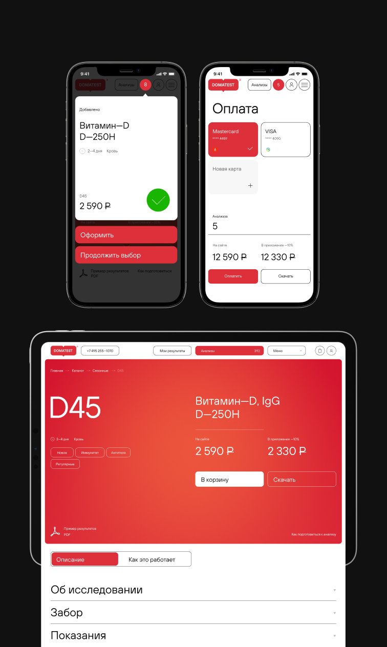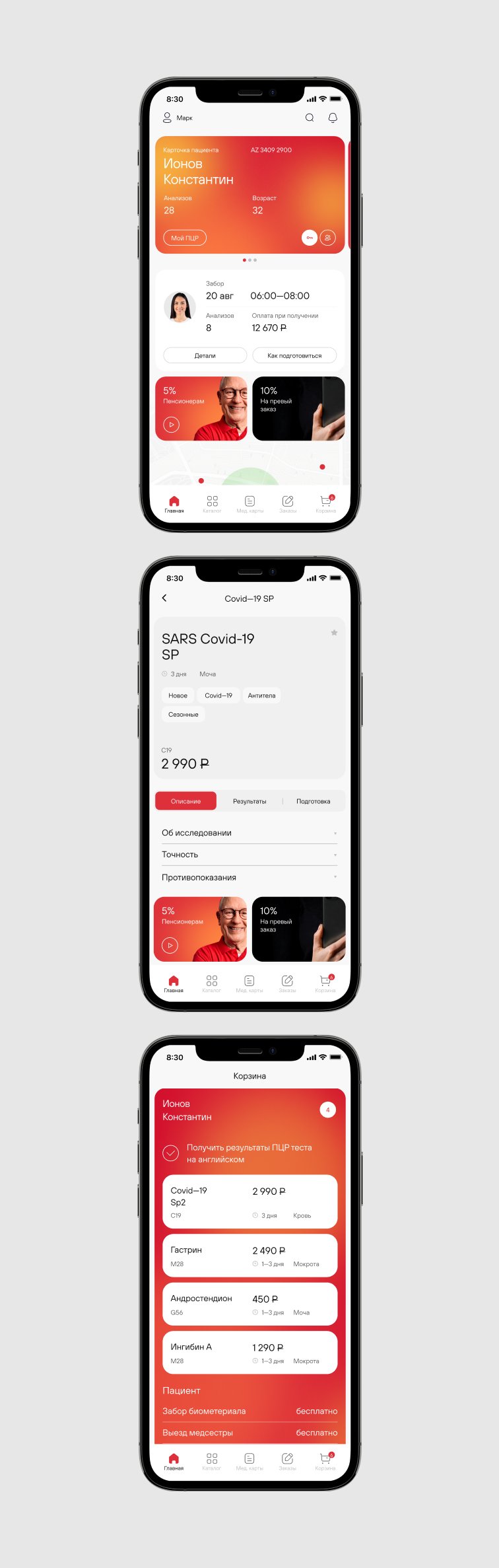 Медтех онлайн-сервис, который позволяет сдать анализы дома. Дизайн с заботой о пациентах.