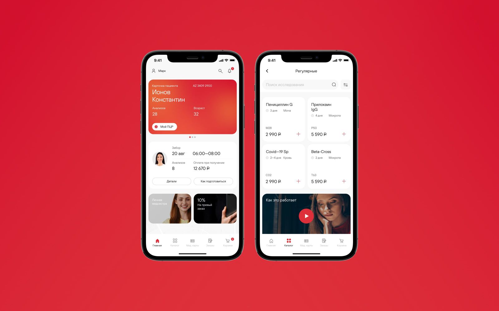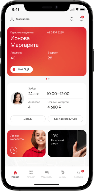 Медтех онлайн-сервис, который позволяет сдать анализы дома. Дизайн с заботой о пациентах.
