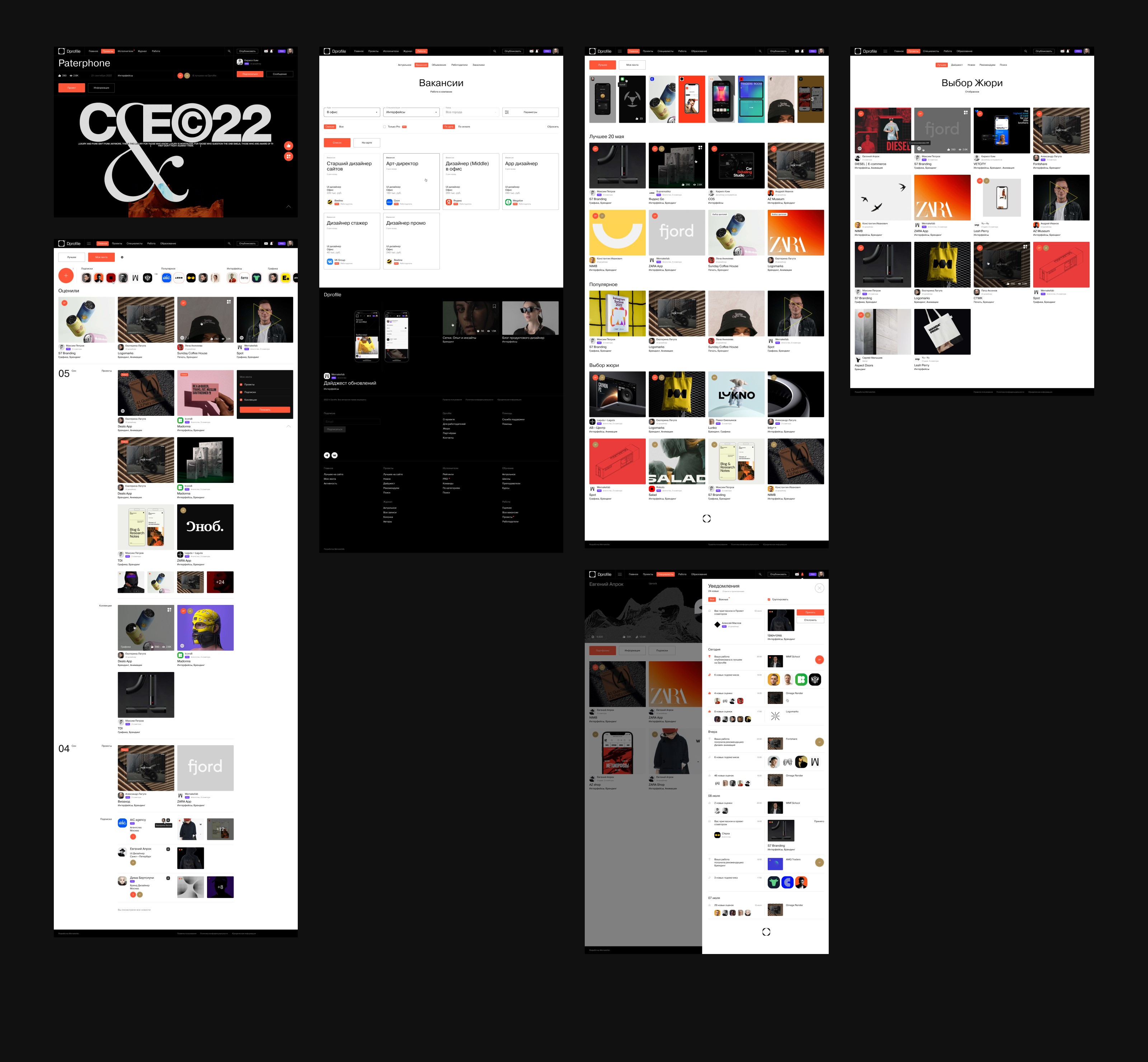 Во всех проектах дизайнерам нужно было подготовить проект по специальному техзаданию, а результат опубликовать на Dprofile. Так мы получаем для себя новую аудиторию, а дизайнеры — интересные проекты в портфолио, дополнительные охваты и обратную связь от арт-директоров и других признанных специалистов.