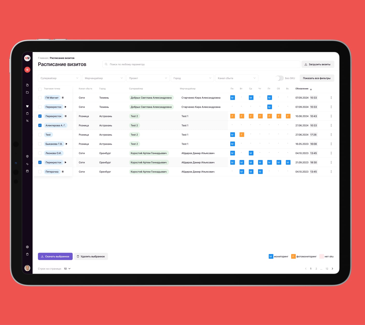 Супервайзеры могут легко составлять расписания, учитывая дни недели и конкретные торговые точки. Шаблоны можно настраивать для разных мерчандайзеров, что позволяет гибко управлять рабочим процессом.