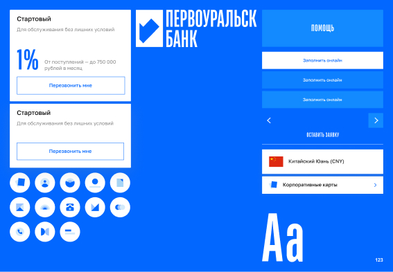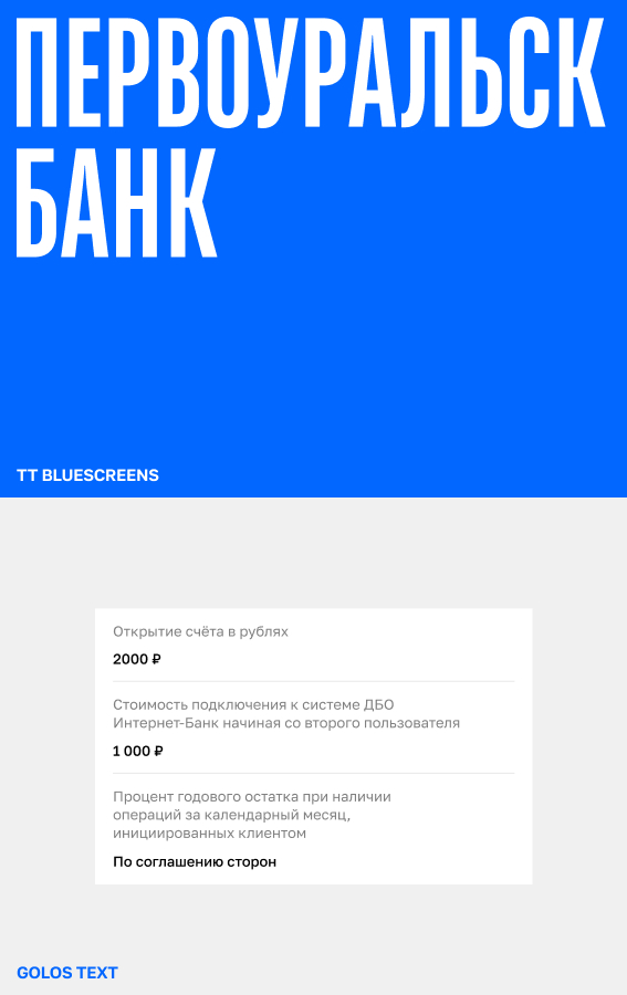Шрифты для логотипа и заголовков выбрали с учётом длинного названия банка.