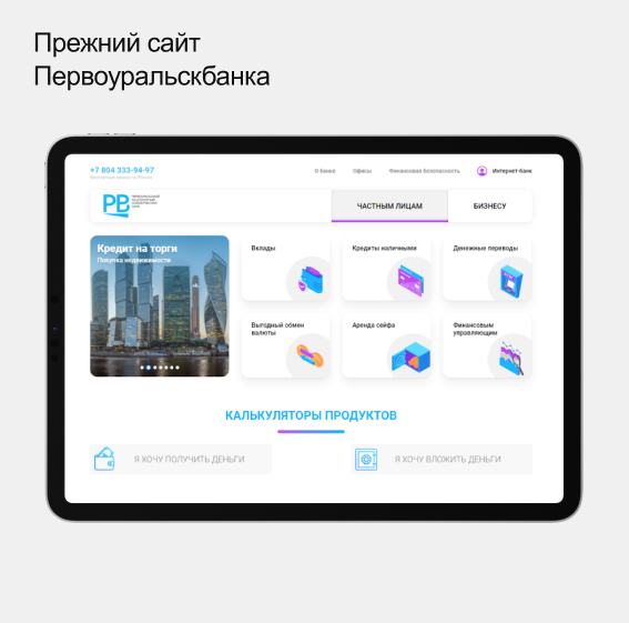 Прежний сайт Первоуральскбанка выглядел устаревшим и не выполнял многих функций, необходимых современному банку.
