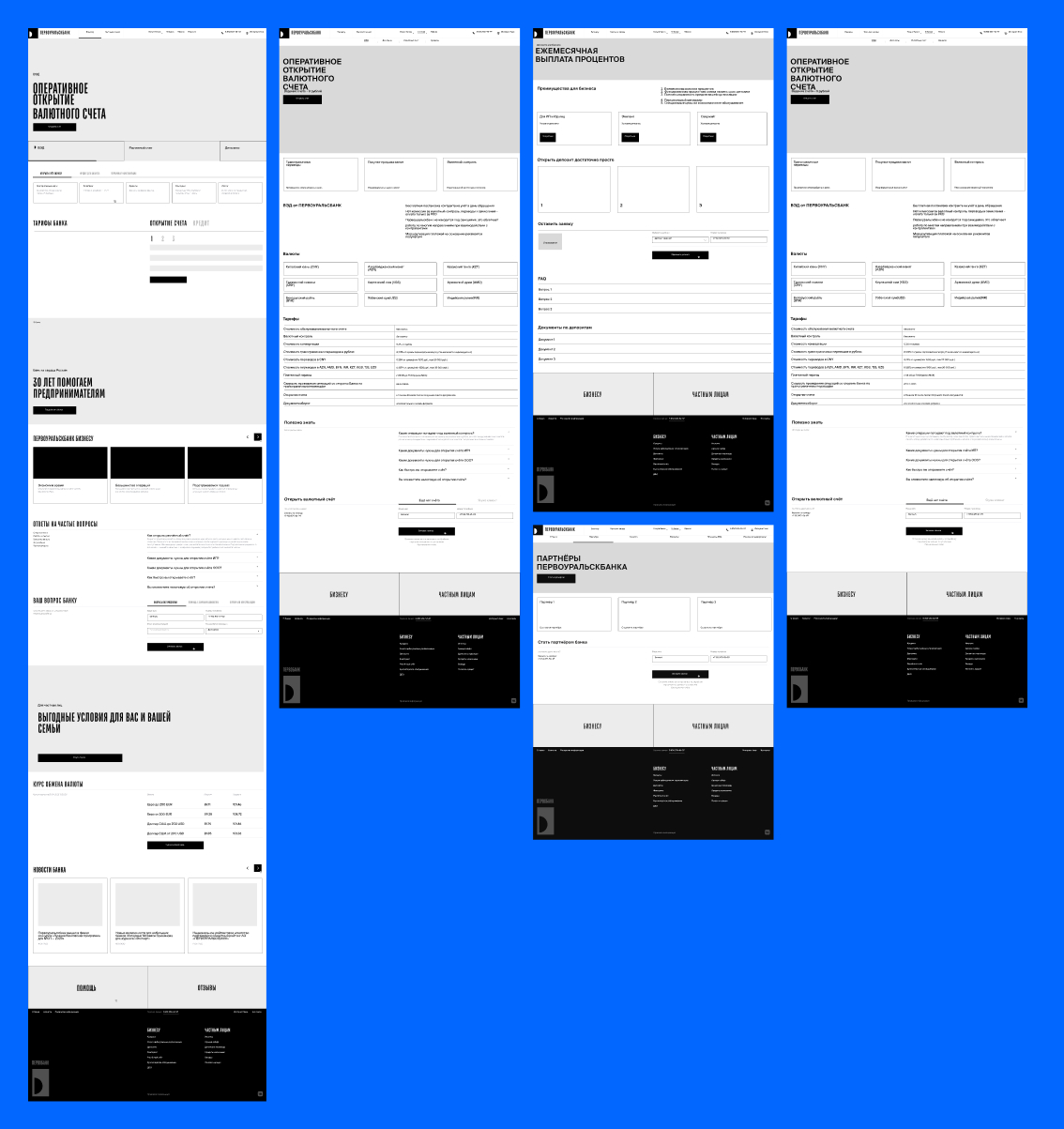 Основным цветом выбрали синий — использовали его в разделах для юр. лиц. Синий ассоциируется со стабильностью, надёжностью и профессионализмом. Также этот оттенок хорошо передаёт диджитальный имидж банка, позиционируя его как технологичного и надёжного финансового партнёра.