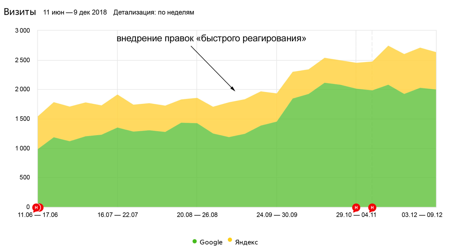 Таким образом, мы добились не только количественного роста трафика, но и повысили его качество.