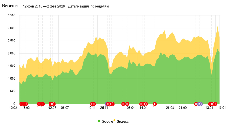 Рост органического трафика из Яндекса и Google составил 15,4% при сравнении с идентичным периодом прошлого года.
