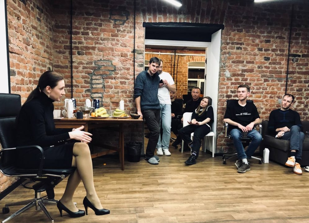 В этот раз спикером был сторонний специалист — Ольга Лозина, HR Business Partner в «Додо Пицца». Она занимается работой с сотрудниками: их мотивацией, наймом и увольнением.