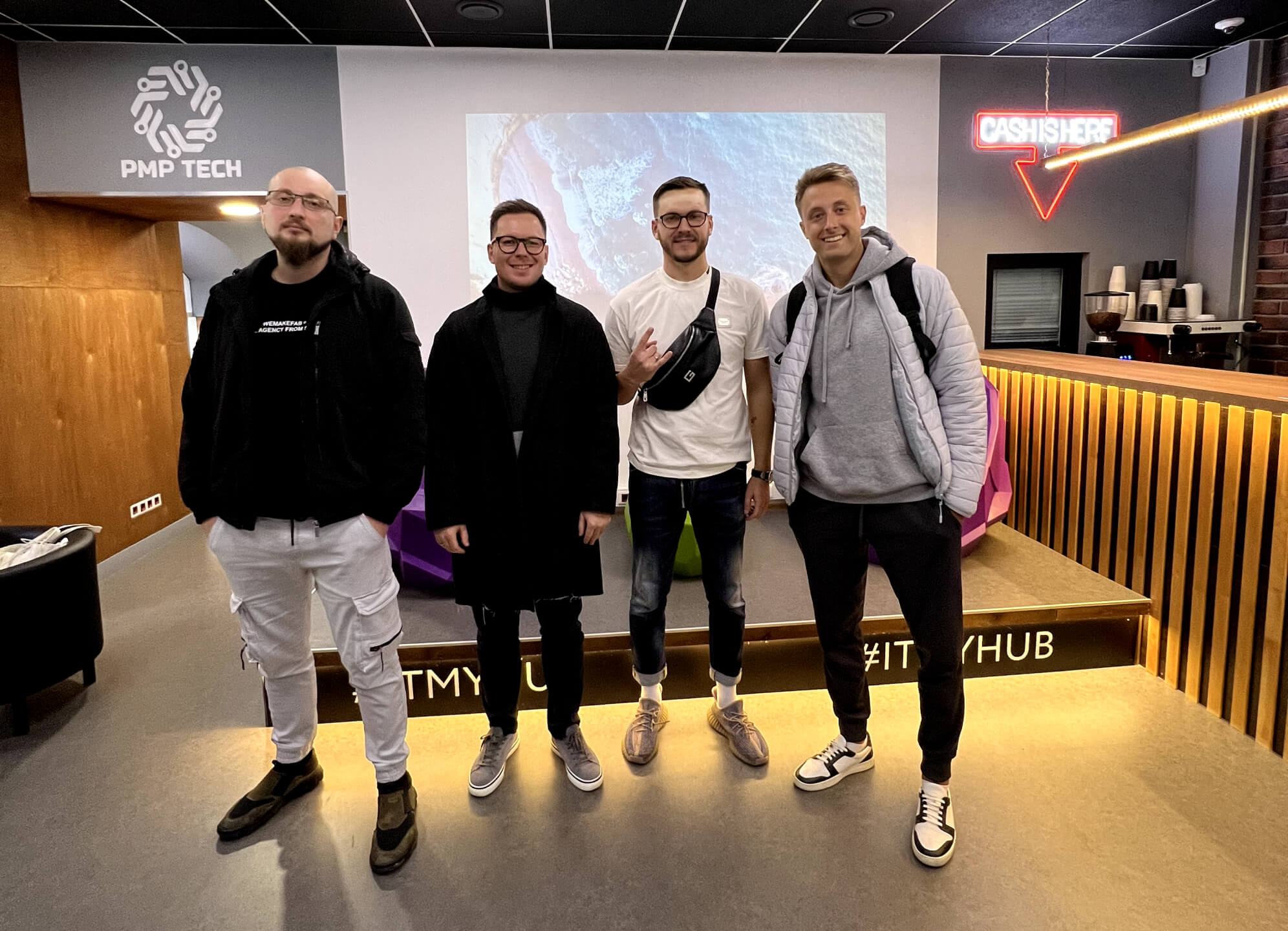 Мы не только приглашаем гостей к себе в офис, но и сами иногда приезжаем посмотреть, как работают коллеги. В октябре побывали на площадке IT MY HUB, где работает часть команды PMP_TECH во главе с Николаем Подоляном. Обсудили коллабы и совместные мероприятия. В ноябре — хотим провести первый ивент.
