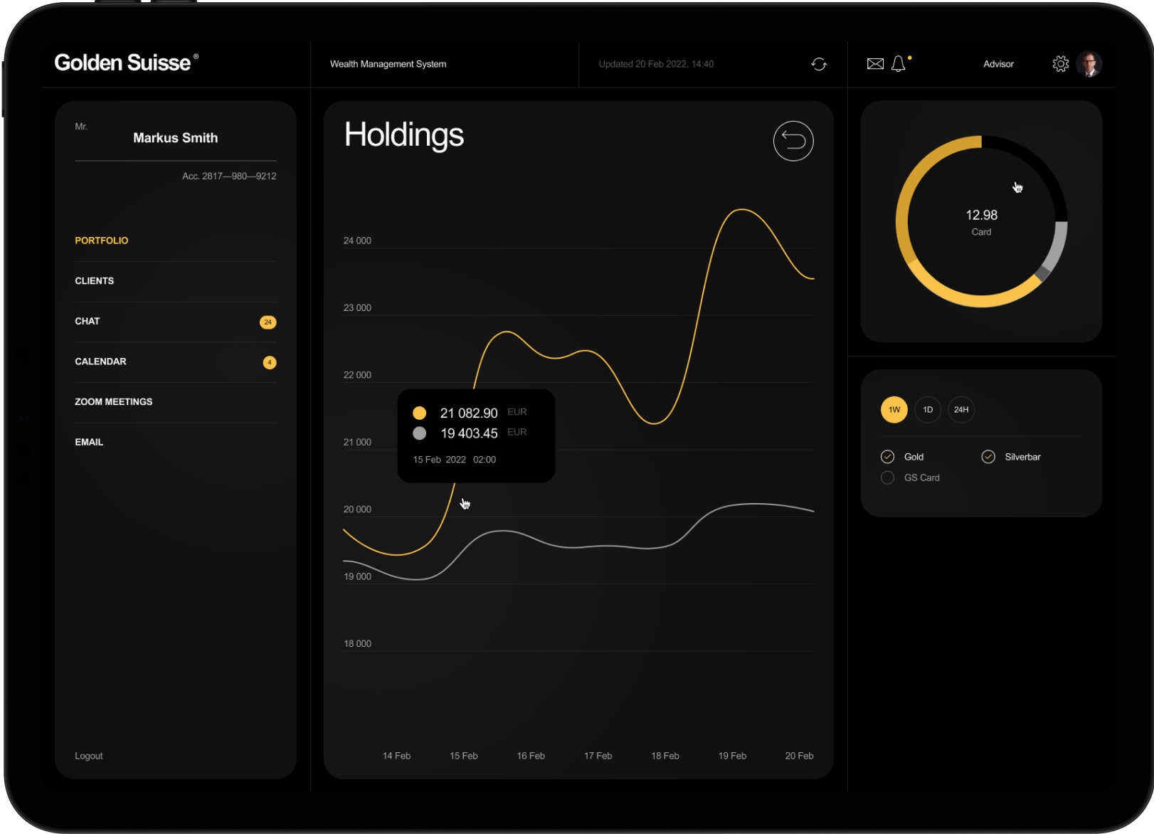 Разработка брендированной айдентики, редизайн мобильного приложения и разработка сайта для швейцарского финансового сервиса.